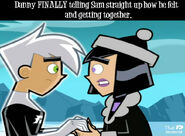 Danny and Sam are best friends having known each other since childhood. They share an extremely strong and close friendship, possibly even closer and stronger than Danny's friendship with Tucker as Sam was the person who encouraged Danny to enter the Fenton Portal, thus giving him his powers. While in the beginning, Danny wanted to return to being normal, unhappy with his situation, Sam encouraged Danny to instead embrace his powers assuring they make him unique. Since then, Sam alongside Tucker helps Danny to keep his powers and secret identity as Danny Phantom a secret from everyone while helping him to defend Amity Park from ghost attacks. However, Danny and Sam are known to have their differences and issues that can sometimes lead to trouble, but despite any troubles or difficulties between them, they are always willing to help whenever they can. Prior to Danny and Sam realizing their true romantic feelings for one another, everyone around them, family, friends, enemies etc, they immediately realized their romantic feelings and constantly refer them as a couple or boyfriend/girlfriend respectively.