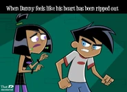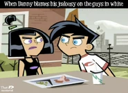 Originally, Danny was somewhat unaware of his true feelings towards Sam due to his romantic interest in Paulina and later Valerie Grey, but eventually comes to realize how he truly feels about her. Danny is also shown to be very jealous whenever Sam shows interest in other guys such as when she began a brief romantic relationship with exchange student Gregor. Danny and Sam's love for each other is further proven to be truly strong during the first season finale, Control Freaks, Danny was able to break free of his mind control to save Sam's life. They are also shown to almost constantly blush around each other during some of their most romantic moments together such as holding hands or hugging. However, despite both of them finally and fully acknowledging their mutual romantic feelings for each other, both Danny and Sam are nervous and shy when expressing how they actually feel.
