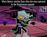 In regards to working together to hunt down and capture ghosts who invade Amity Park, Danny and Sam make a great team, always looking out for each other and helping in any way they can. Sam is good at both combat and research to ghosts weaknesses such as when she provided Danny with important information in regards to controlling the Reality Gaunlet in Reality Trip. Danny and Sam are also both very protective of each other as Sam is worried for Danny's safety and Danny always saves Sam whenever she is in any danger or kidnapped. In the final season of the series, Danny and Sam grow closer and their feelings become stronger as proven in several episodes, especially in Frightmare when they both had the same dream about being a couple and nearly sharing a kiss. Danny and Sam's romantic feelings begin to emerge more and they make more attempts and efforts to reveal how they actually truly feel about each other.